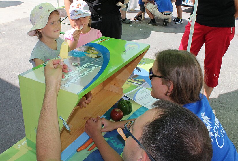 Unter dem Motto "Landwirtschaft begreifen" wurde ein Parcours mit mehreren Stationen aufgebaut bei denen den Kindern auf unterschiedlichste Weise landwirtschaftliche Themen vermittelt wurden. Die Kinder sollten Lebensmitteln ihren landwirtschaftlichen Urprodukten zuordnen, den Weg des Holzes ordnen und vieles mehr, beim "Landwirtschafts-1, 2, 3" lernten die Kinder vieles über Lebensmittel und ähnliches, die Milchkuh Gerda rundete das Programm ab.